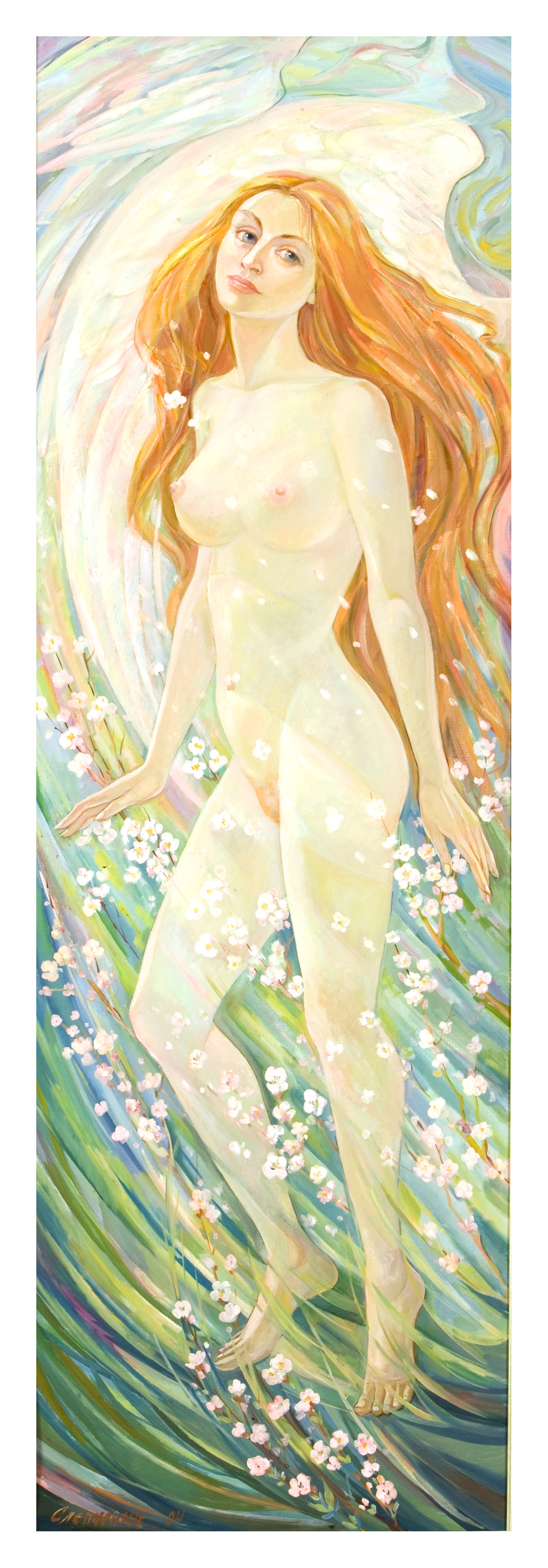 Lelya is a Slavic deity of the spring, a wife of Yarylo, the young spring sun. In ancient pagan beliefs she was considered a goddess of young couples falling in love. Lelya is represented as a young beautiful girl, adorned with wreaths of flowers and herbs. The artist has presented his daughter in the image of Lelya. (ST)