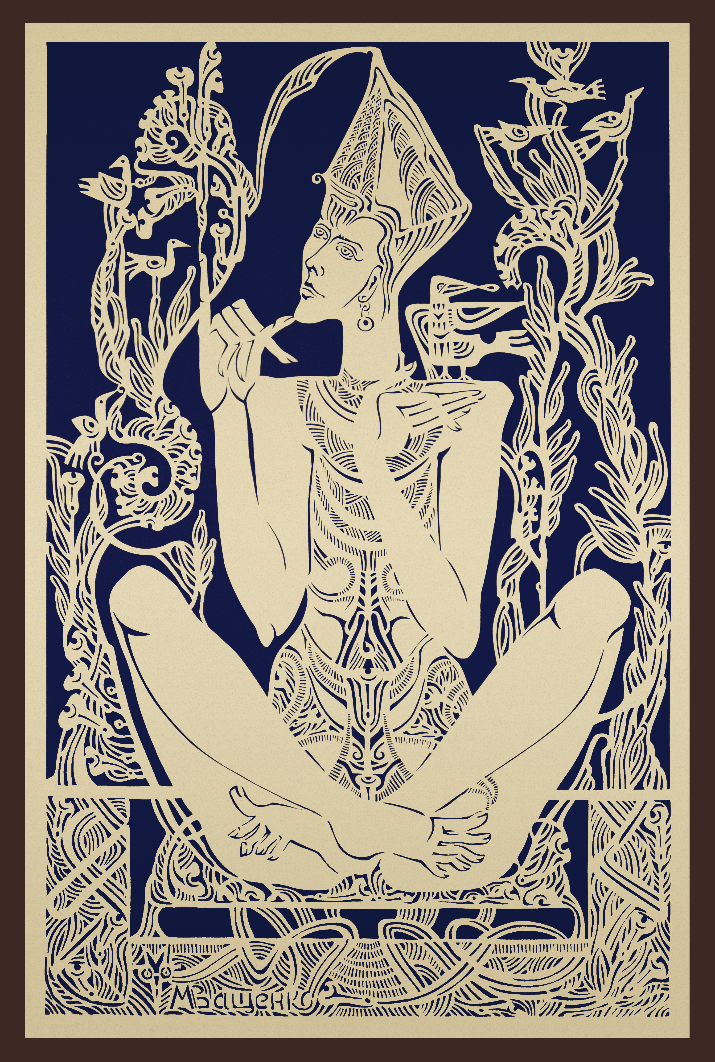 Maryna Vashchenko (b. 1982) is a Ukrainian artist who works in various art forms (painting, graphics, paper cutting, and handpainted cards). She teaches at the Kyiv Academy of Art & Design and between 2009 and 2019, she organized numerous exhibitions of student works. She founded the creative collaboration Hota Ruta, within which the exhibition projects "KRAFTORIY" (a paper cutting competition) and "Art Parallels" (a graphics competition) are conducted. Between 2007 and 2019, the artist held over ten solo exhibitions.